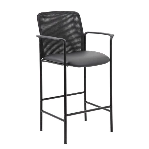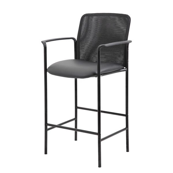 The slender and sleek Contemporary Mesh Back Stool in black is a versatile seat that can be utilized from a drafting stool to guest seating. It is made from sturdy mesh with a Caressoft material on the seat. Caressoft is an upholstery that looks & feels a lot like leather, but is far more durable and can be easily cleaned with a damp cloth. The stool has fixed arms and a 4 leg tubular base made from sturdy black steel which offers a 275 lbs. capacity.