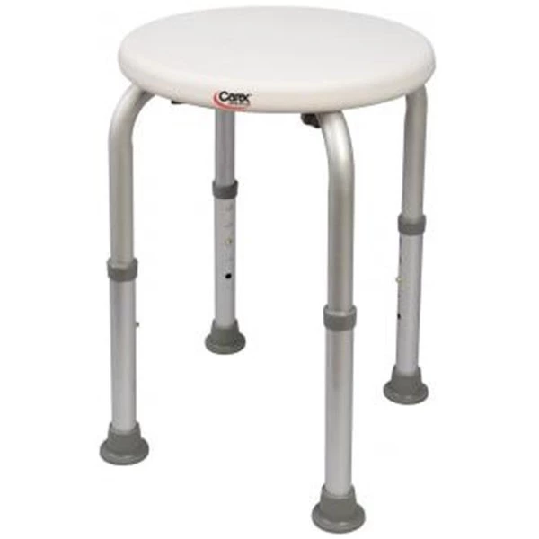 The Adjustable Round Shower Stool is ideal for narrow tubs and showers. Features adjustable aluminum legs help provide a stable base and slip resistant tips. Item Length: 3.25Item Height: 14.38Item Width: 15.75