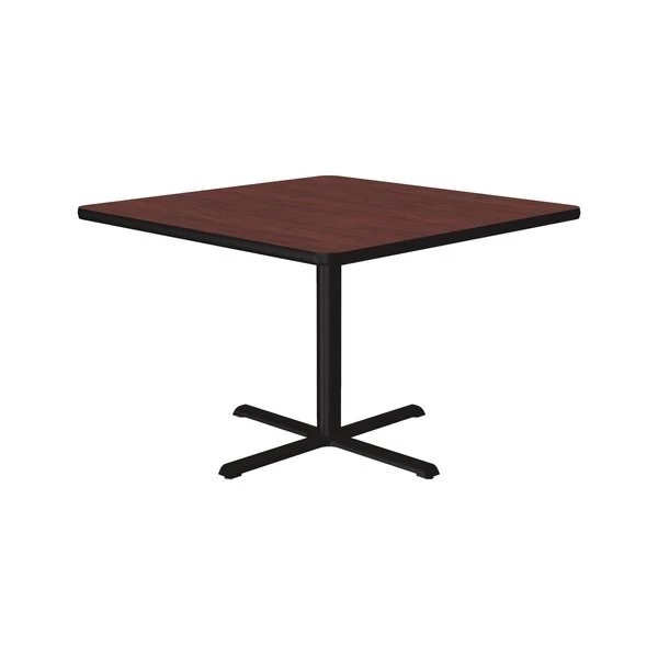 Correll Café, & Break Room Tables. Built for the harsh demands of Commercial use. Standard 29" high table. 36" Square Mahogany high pressure laminate Top. Laminate surface resists scratches and stains and offers a hard, flat surface. Top also features a Backer sheet on underside of table that helps protect against moisture entering the underside of the table causing warping. Black textured cast iron spider and X-base with 3" steel column for strength and durability. Bases include nylon leveling guides for study placement. Black T-Mold edges provide protection to both the table and your walls. Meets BIFMA Standards. . YOU CAN COUNT ON CORRELL: Correll was established in 1969 and has been in business for over 50 years. With our out Standing Customer Service, innovative new product lines, and the largest selection of Folding Tables available from any manufacturer, now, more than ever, you can count on Correll.