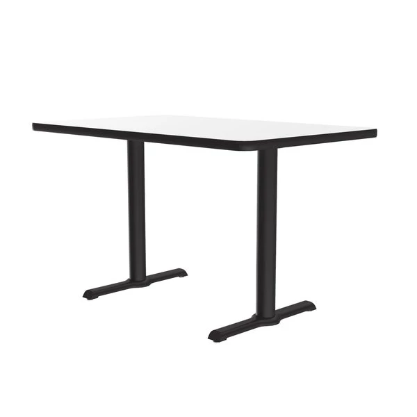 Correll Café, & Break Room Tables. Built for the harsh demands of Commercial use. 30"x48" White Rectangular high pressure laminate Top. Laminate surface resists scratches and stains and offers a hard, flat surface. Top also features a Backer sheet on underside of table that helps protect against moisture entering the underside of the table causing warping. Black textured cast iron spider and dual T-bases with 2 steel columns for strength and durability. Bases include nylon leveling guides for study placement. Black T-Mold edges provide protection to both the table and your walls. Meets BIFMA Standards. . YOU CAN COUNT ON CORRELL: Correll was established in 1969 and has been in business for over 50 years. With our out Standing Customer Service, innovative new product lines, and the largest selection of Folding Tables available from any manufacturer, now, more than ever, you can count on Correll.