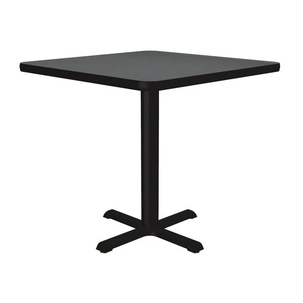 Correll Café, & Break Room Tables. Built for the harsh demands of Commercial use. Standard 29" high table. 24" Square Montana Granite high pressure laminate Top. Laminate surface resists scratches and stains and offers a hard, flat surface. Top also features a Backer sheet on underside of table that helps protect against moisture entering the underside of the table causing warping. Black textured cast iron spider and X-base with 3" steel column for strength and durability. Bases include nylon leveling guides for study placement. Black T-Mold edges provide protection to both the table and your walls. Meets BIFMA Standards. . YOU CAN COUNT ON CORRELL: Correll was established in 1969 and has been in business for over 50 years. With our out Standing Customer Service, innovative new product lines, and the largest selection of Folding Tables available from any manufacturer, now, more than ever, you can count on Correll.