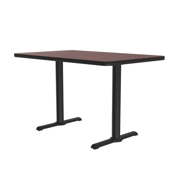 Correll Café, & Break Room Tables. Built for the harsh demands of Commercial use. 30"x60" Mahogany Rectangular high pressure laminate Top. Laminate surface resists scratches and stains and offers a hard, flat surface. Top also features a Backer sheet on underside of table that helps protect against moisture entering the underside of the table causing warping. Black textured cast iron spider and dual T-bases with 2 steel columns for strength and durability. Bases include nylon leveling guides for study placement. Black T-Mold edges provide protection to both the table and your walls. Meets BIFMA Standards. . YOU CAN COUNT ON CORRELL: Correll was established in 1969 and has been in business for over 50 years. With our out Standing Customer Service, innovative new product lines, and the largest selection of Folding Tables available from any manufacturer, now, more than ever, you can count on Correll.