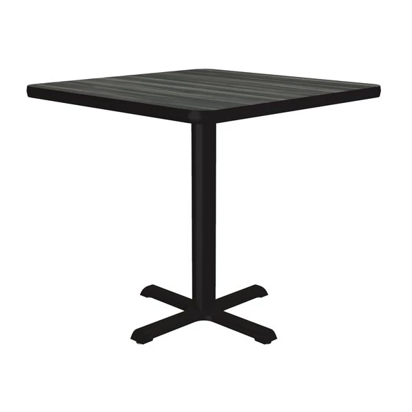 Correll Café, & Break Room Tables. Built for the harsh demands of Commercial use. Standard 29" high table. 30" Square New England Driftwood high pressure laminate Top. Laminate surface resists scratches and stains and offers a hard, flat surface. Top also features a Backer sheet on underside of table that helps protect against moisture entering the underside of the table causing warping. Black textured cast iron spider and X-base with 3" steel column for strength and durability. Bases include nylon leveling guides for study placement. Black T-Mold edges provide protection to both the table and your walls. Meets BIFMA Standards. . YOU CAN COUNT ON CORRELL: Correll was established in 1969 and has been in business for over 50 years. With our out Standing Customer Service, innovative new product lines, and the largest selection of Folding Tables available from any manufacturer, now, more than ever, you can count on Correll.