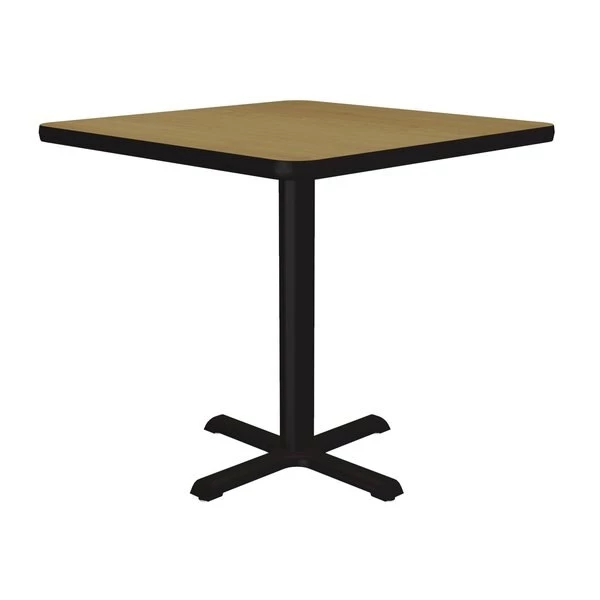 Correll Café, & Break Room Tables. Built for the harsh demands of Commercial use. Standard 29" high table. 30" Square Fusion Maple high pressure laminate Top. Laminate surface resists scratches and stains and offers a hard, flat surface. Top also features a Backer sheet on underside of table that helps protect against moisture entering the underside of the table causing warping. Black textured cast iron spider and X-base with 3" steel column for strength and durability. Bases include nylon leveling guides for study placement. Black T-Mold edges provide protection to both the table and your walls. Meets BIFMA Standards. . YOU CAN COUNT ON CORRELL: Correll was established in 1969 and has been in business for over 50 years. With our out Standing Customer Service, innovative new product lines, and the largest selection of Folding Tables available from any manufacturer, now, more than ever, you can count on Correll.