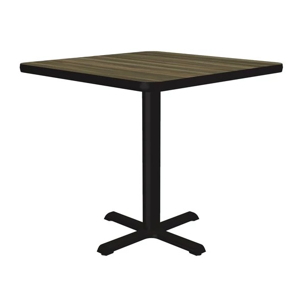 Correll Café, & Break Room Tables. Built for the harsh demands of Commercial use. Standard 29" high table. 30" Square Colonial Hickory high pressure laminate Top. Laminate surface resists scratches and stains and offers a hard, flat surface. Top also features a Backer sheet on underside of table that helps protect against moisture entering the underside of the table causing warping. Black textured cast iron spider and X-base with 3" steel column for strength and durability. Bases include nylon leveling guides for study placement. Black T-Mold edges provide protection to both the table and your walls. Meets BIFMA Standards. . YOU CAN COUNT ON CORRELL: Correll was established in 1969 and has been in business for over 50 years. With our out Standing Customer Service, innovative new product lines, and the largest selection of Folding Tables available from any manufacturer, now, more than ever, you can count on Correll.