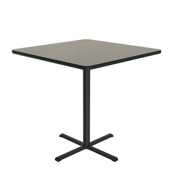 Correll Café, & Break Room Tables. Built for the harsh demands of Commercial use. These 42" bar height tables are the perfect height for standing or use with stools. 36" Square Savannah Sand Rectangular high pressure laminate Top. Laminate surface resists scratches and stains and offers a hard, flat surface. Top also features a Backer sheet on underside of table that helps protect against moisture entering the underside of the table causing warping. Black textured cast iron spider and X-base with 3" steel column for strength and durability. Bases include nylon leveling guides for study placement. Black T-Mold edges provide protection to both the table and your walls. Meets BIFMA Standards. . YOU CAN COUNT ON CORRELL: Correll was established in 1969 and has been in business for over 50 years. With our out Standing Customer Service, innovative new product lines, and the largest selection of Folding Tables available from any manufacturer, now, more than ever, you can count on Correll.