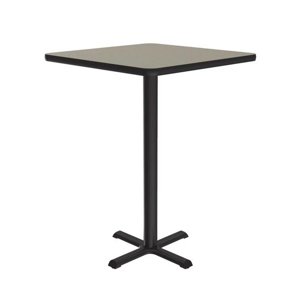Correll Café, & Break Room Tables. Built for the harsh demands of Commercial use. These 42" bar height tables are the perfect height for standing or use with stools. 24" Square Savannah Sand Rectangular high pressure laminate Top. Laminate surface resists scratches and stains and offers a hard, flat surface. Top also features a Backer sheet on underside of table that helps protect against moisture entering the underside of the table causing warping. Black textured cast iron spider and X-base with 3" steel column for strength and durability. Bases include nylon leveling guides for study placement. Black T-Mold edges provide protection to both the table and your walls. Meets BIFMA Standards. . YOU CAN COUNT ON CORRELL: Correll was established in 1969 and has been in business for over 50 years. With our out Standing Customer Service, innovative new product lines, and the largest selection of Folding Tables available from any manufacturer, now, more than ever, you can count on Correll.