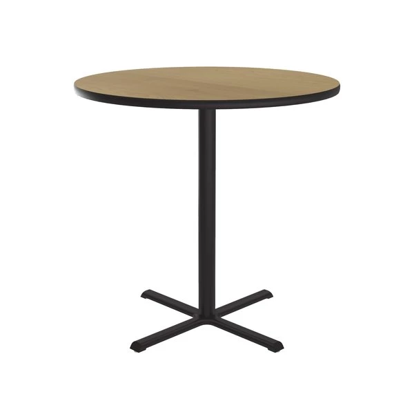 Correll Café, & Break Room Tables. Built for the harsh demands of Commercial use. These 42" bar height tables are the perfect height for standing or use with stools. 36" Round Fusion Maple Rectangular high pressure laminate Top. Laminate surface resists scratches and stains and offers a hard, flat surface. Top also features a Backer sheet on underside of table that helps protect against moisture entering the underside of the table causing warping. Black textured cast iron spider and X-base with 3" steel column for strength and durability. Bases include nylon leveling guides for study placement. Black T-Mold edges provide protection to both the table and your walls. Meets BIFMA Standards. . YOU CAN COUNT ON CORRELL: Correll was established in 1969 and has been in business for over 50 years. With our out Standing Customer Service, innovative new product lines, and the largest selection of Folding Tables available from any manufacturer, now, more than ever, you can count on Correll.