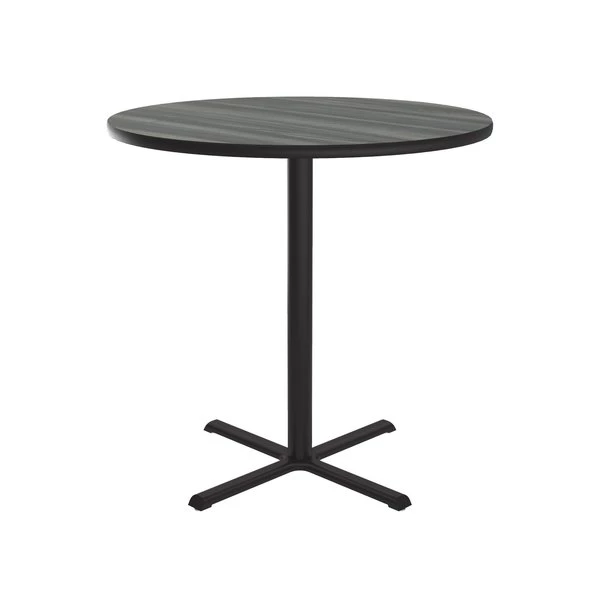 Correll Café, & Break Room Tables. Built for the harsh demands of Commercial use. These 42" bar height tables are the perfect height for standing or use with stools. 42" round New England Driftwood Rectangular high pressure laminate Top. Laminate surface resists scratches and stains and offers a hard, flat surface. Top also features a Backer sheet on underside of table that helps protect against moisture entering the underside of the table causing warping. Black textured cast iron spider and X-base with 3" steel column for strength and durability. Bases include nylon leveling guides for study placement. Black T-Mold edges provide protection to both the table and your walls. Meets BIFMA Standards. . YOU CAN COUNT ON CORRELL: Correll was established in 1969 and has been in business for over 50 years. With our out Standing Customer Service, innovative new product lines, and the largest selection of Folding Tables available from any manufacturer, now, more than ever, you can count on Correll.