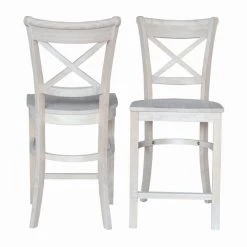 International Concepts Ava Solid Wood Counter Height Bar Stool – 24" Seat Height – Washed Gray Taupe