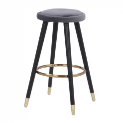 Lumisource Cavalier Counter Stool in Black Wood, Silver Velvet and Gold, PK 2
