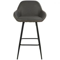 Lumisource Clubhouse Counter Stool and Black and Grey Faux Leather, PK 2