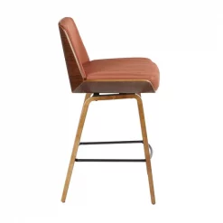 Lumisource Corazza Counter Stool in Walnut Wood and Orange Fabric