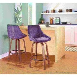 Lumisource Diana Counter Stool in Walnut Wood and Grey Velvet, PK 2