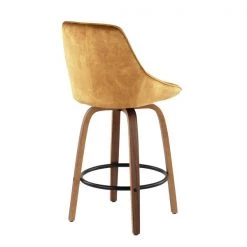 Lumisource Diana Counter Stool in Walnut Wood and Golden Yellow Velvet, PK 2