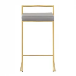 Lumisource Fuji Counter Stool in Gold with Grey Faux Leather, PK 2