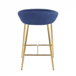 Lumisource Matisse Counter Stool with Gold Metal and Blue Velvet, PK 2