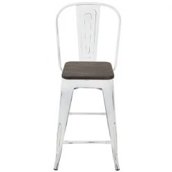 Lumisource Oregon High Back Counter Stool in Vintage White and Espresso, PK 2