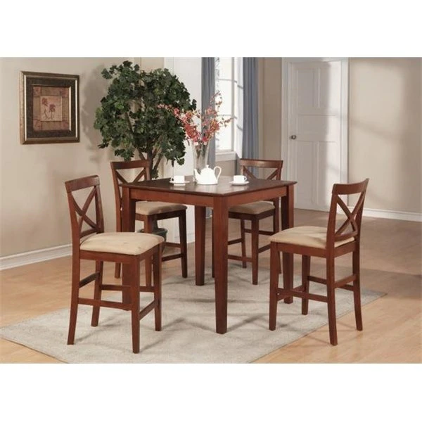 This Listing is for 3 pc set including Table & 2 chairs The Pub Set has contemporary styling to complement any decor.This dinette is ideal for a small kitchen or dining area.It has durable construction with Asian solid wood. available in two lovely finishes — oak or rich brown.The square table has simple. straight legs. and the table top has a straight-edged border.The counter-height stools feature attractive X-backs with Cushion upholstered seats. Dimension Table: 36W x 36D x 36HDimension Chair: 18W x 18D x 42H Height Seat : 24 inches