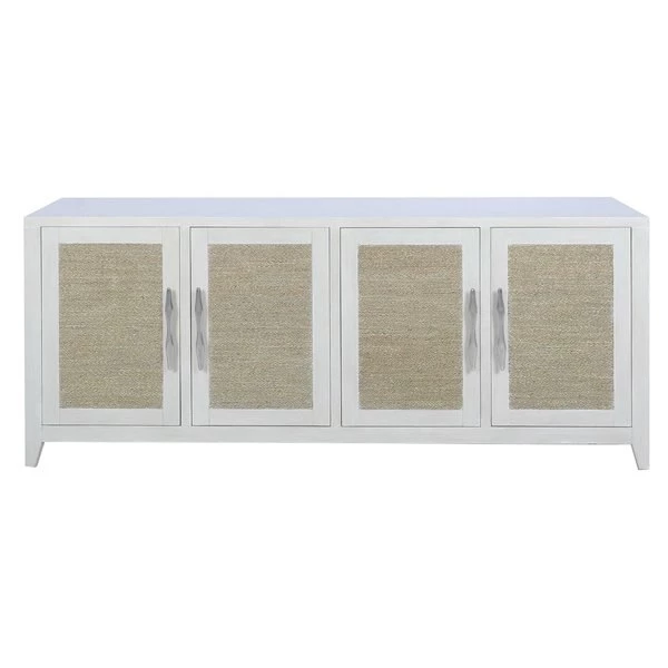 The Joyner 4-Door Credenza is ideal for adding texture and depth to a coastal or organic inspired room. Made from wood and accented with wicker insets, it comes in a bleached wood finish, giving it a fresh modern look. Its ample cupboard compartments are concealed behind four doors, making ideal for storing household items discreetly.