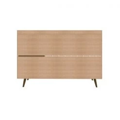 This 4 Door Credenza is a wood storage piece painted with a blue distressed finish. Four glass paned doors open to reveal shelving within. Perfect for a relaxed coastal or farmhouse setting, this cabinet offers maximum storage options for a dining room or living room.