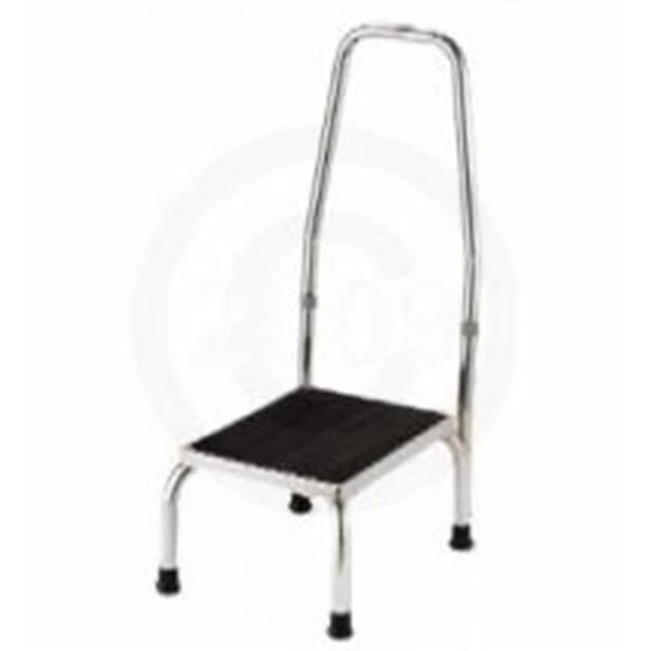 Endurance Chrome Plated Safety Foot Stools comes with handrail for support while on the stool. Stool is chrome plated for additional strength and durability. Non slip top is rubberized for added safety. Stool measurements: Height: 9" . Length: 14 1/4". Width: 11 1/4". Height of Hand Rail: 33"