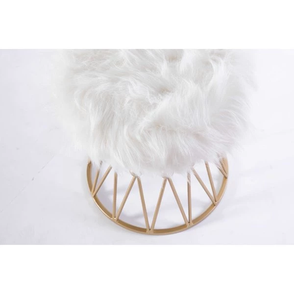 Give your home decor a chic and modern spin with gold metal vanity stool with faux fur white top. Elegant, compact, and useful, its perfect for use as makeup vanity stool, bedroom ottoman, or living room side table. This stool is composed out of durable metal, offering a sturdy base for continual use. The fur top seat offers a plush and comfortable seating area which works both for comfort and as a cozy decoration.