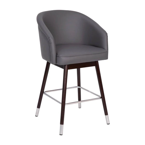 Bring your home or business into the 21st century with the modern trendy style of this commercial grade stool available in bar and counter heights. Covered in soft and durable LeatherSoft upholstery and boasting brushed silver accents on the legs and footrest, the minimalist style of this mid-back 26" counter stool is sure to be an asset in any decor. The contoured back, integrated arms, and high density foam padding give your guests the ultimate place to relax and unwind. Great style paired with superior strength and durability make this bar stool a must-have for both business and home environments. Solid beechwood legs paired with powder coated steel bracing that doubles as a footrest allow this upholstered stool to hold up to 300 lbs. static weight. Floor protector glides keep your hard flooring surfaces free from damage and assembly takes less than 30 minutes with the included tools and instructions. Wipe with a dry cloth to keep your new bar height chairs looking brand new.