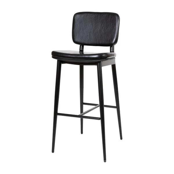 Sleek modern style meets well-crafted comfort in this set of 2 streamlined commercial grade mid-back barstools for your upscale hotel bar. Soft and durable LeatherSoft upholstery over a generously padded back and seat provide a snug but elegant perch to linger over a meal or your morning matcha tea or coffee but is stylish enough to be used as extra seating for guests. The mid-back design assists with posture control but also allows you to maintain movement while seated. The H-shaped integrated footrest eases the pressure from the legs for more comfortable seating. Quality and stability are top priorities for any seating in your home. A sturdy powder coated iron frame with metal screw reinforcements ensures a safe seating experience for your family. Adjustable plastic glides provide a level stool and protect your hard flooring surfaces from scuffs and scratches. Assemble your new dining stools in under 30 minutes with the provided step-by-step illustrated instructions. A dry cloth is all it takes to keep your new barstools looking great. Purchase more than one set of these modern barstools for your pub height dining table, basement bar or just to have on hand for unexpected company.