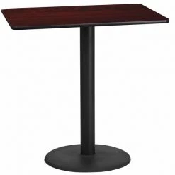 Complete your restaurant, break room or cafeteria with this table top and base configuration. This set is designed for commercial use to withstand the daily rigors in the hospitality industry. This set will also make a great option for your home as a dining table or in the rec room. Whether you are just starting your business or upgrading your furniture this table base will complete the look. <ul><li>Bar Height Hospitality Table</li><li>Mahogany Laminate Top</li><li>Top Size: 24''W x 42''L</li><li>1.125'' Thick Top with melamine core</li><li>Black T-Mold Protective Edging</li><li>24'' Round Table Base with 4'' Dia. Bar Height Column</li><li>Base Size: 24''W x 42''H</li><li>Easy 2-Piece Base Assembly with Single Bolt</li><li>Top Plate Pre-Welded to Column</li><li>Cast Iron Construction</li></ul>