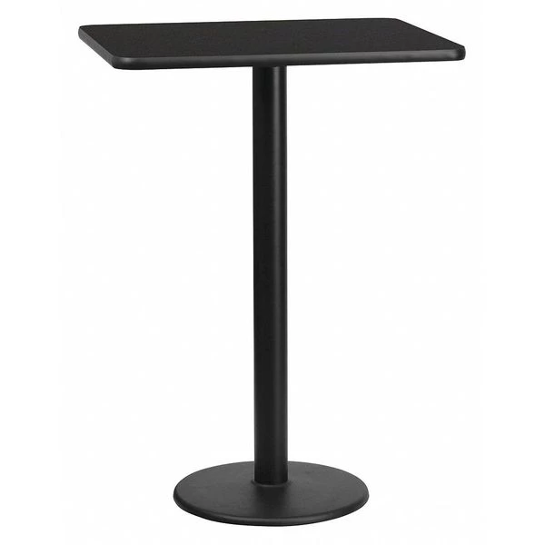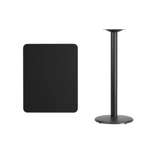 Complete your restaurant, break room or cafeteria with this table top and base configuration. This set is designed for commercial use to withstand the daily rigors in the hospitality industry. This set will also make a great option for your home as a dining table or in the rec room. Whether you are just starting your business or upgrading your furniture this table base will complete the look. <ul><li>Bar Height Hospitality Table</li><li>Black Laminate Top</li><li>Top Size: 24''W x 30''L</li><li>1.125'' Thick Top with melamine core</li><li>Black T-Mold Protective Edging</li><li>18'' Round Table Base with 3'' Dia. Bar Height Column</li><li>Base Size: 18''W x 42''H</li><li>Easy 2-Piece Base Assembly with Single Bolt</li><li>Top Plate Pre-Welded to Column</li><li>Cast Iron Construction</li></ul>