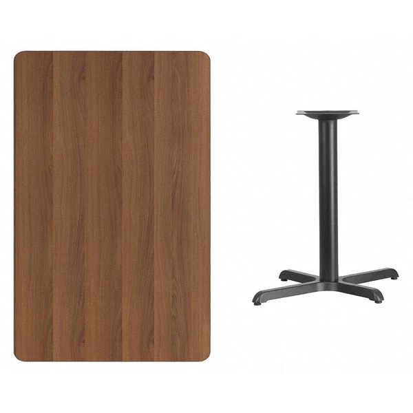 Complete your restaurant, break room or cafeteria with this table top and base configuration. This set is designed for commercial use to withstand the daily rigors in the hospitality industry. This set will also make a great option for your home as a dining table or in the rec room. Whether you are just starting your business or upgrading your furniture this table base will complete the look. <ul><li>Bar Height Hospitality Table</li><li>Walnut Laminate Top</li><li>Top Size: 30''W x 48''L</li><li>1.125'' Thick Top with melamine core</li><li>Black T-Mold Protective Edging</li><li>22'' x 30'' Table X-Base with 3'' Dia. Bar Height Column</li><li>Base Size: 22''W x 30''D x 42''H</li><li>Easy 2-Piece Base Assembly with Single Bolt</li><li>Top Plate Pre-Welded to Column</li><li>Cast Iron Construction</li></ul>