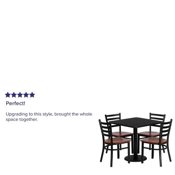- Includes: (1) Table; (4) Ladder Back Metal Chairs