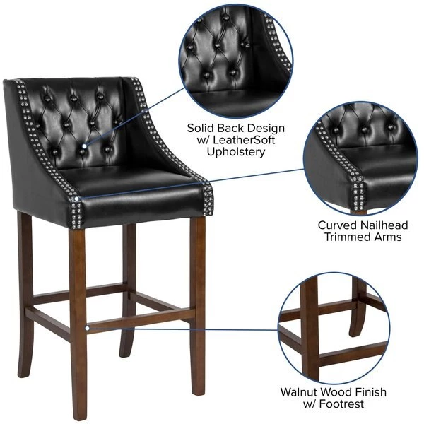 - Item: Carmel Black Leather/Wood Stool, 30″