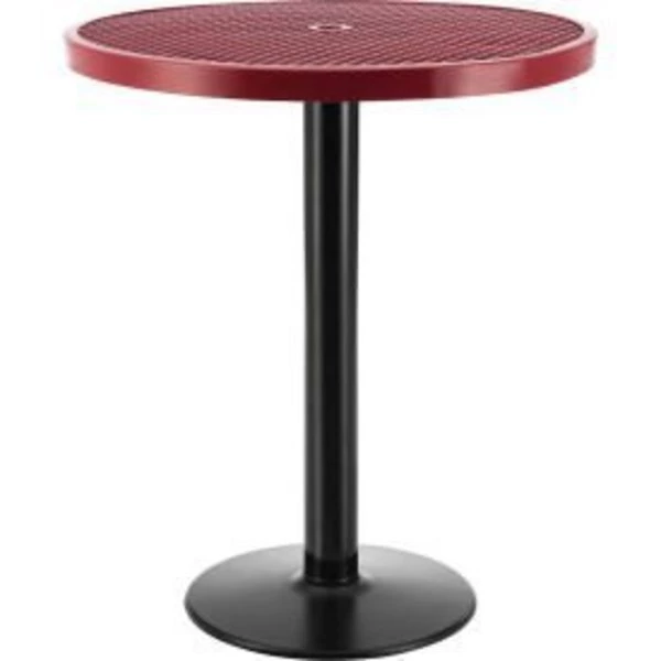 OUTDOOR PORTABLE BAR HEIGHT TABLES ARE IDEAL FOR OUTDOOR BARS, FOOD COURTS, LOUNGES, PATIOS, AND MORE. TABLE TOPS ARE MADE USING HEAVY-GAUGE EXPANDED METAL MESH WITH A THERMOPLASTIC COATING. THIS PROTECTIVE COATING CREATES A SMOOTH, HIGH-GLOSS SURFACE THAT STAYS COOL TO THE TOUCH FOR COMFORTABLE SEATING EVEN IN THE SUN. THERMOPLASTIC COATING RESISTS FADING, MOLD AND VANDALISM, AND WILL ENSURE MAINTENANCE-FREE DURABILITY THROUGH YEARS OF HIGH-TRAFFIC USAGE. TABLETOP FEATURES AN OPENING TO ACCEPT AN UMBRELLA WITH A POLE OF UP TO 1-1/2" DIAMETER. THE STURDY PEDESTAL BASE FEATURES A BLACK TEXTURED POWDER COAT FINISH THAT RESISTS CORROSION. EASY ASSEMBLY. 1 YEAR LIMITED WARRANTY. FEATURES: <ul> 36" ROUND TABLE TOP WITH THERMOPLASTIC FINISH TABLE IS 42" HIGH 4" TUBULAR STEEL COLUMN 21.6" DIAMETER CAST IRON BASE WITH POWDER COAT FINISH ULTRA-LOW MAINTENANCE TABLETOP ACCOMMODATES UP TO 1-1/2" DIAMETER UMBRELLA POLE PORTABLE MOUNT AVAILABLE IN 4 COLORS</ul>