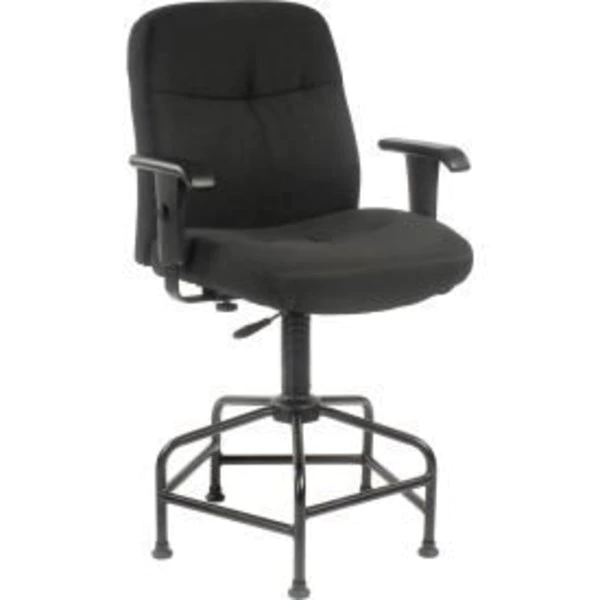 INTERION ; BIG TALL STOOL WITH ADJUSTABLE T-ARMS – BLACK ACCOMMODATES THE NEEDS OF BIG AND TALL PEOPLE. STURDY, REINFORCED CONSTRUCTION FOR DURABILITY. ULTRA 3" THICK CUSHIONING FOR EXTRA COMFORT. ROOMY 20"D X 23"W SWIVEL SEAT, 22-1/2"W X 23"H BACK. PNEUMATIC 26" – 29" HEIGHT ADJUSTMENT. FOUR FOOTREST HEIGHTS FOR CUSTOMIZED LEG SUPPORT. DURABLE SPIDER BASE WITH GLIDES. T-ARMS ADJUST UP/DOWN, IN/OUT. BRAND IS INTERION ; BY Global. 2 YEAR LIMITED WARRANTY.
