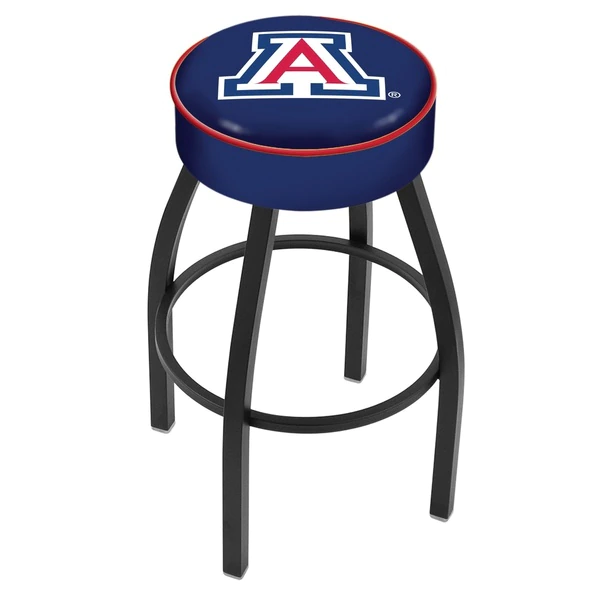 Made for the ultimate sports fan, you will be proud to show where your loyalty lies with this impressive Officially Licensed stool from the Holland Bar Stool Co. This contemporary L8B1 stool features a single-ring black wrinkle base with a 5" scooped cushion that conceals the swivel for an exceptionally clean look. A state of the art print process is used in applying specially formulated UV vinyl ink in numerous stages to produce a sharp, crisp, clear image to ensure a perfect reproduction of the logo. You won't find a higher quality logo stool on the market. The frame is made from commercial quality 16 gauge, 1 1/4 inch tube steel with solid mig welded joints to guarantee strength and durability. The powder coated finish resists chips and scratches and ensures a long-lasting, rich appearance. The cushion seats are of the highest quality as well, utilizing a breathable, commercial grade vinyl. At the heart of the cushion is highly-dense foam that provides maximum support and will not breakdown in a couple years. If you're going to finish your bar, game room, or man cave do it right- with a logo stool made by the Holland Bar Stool Co.