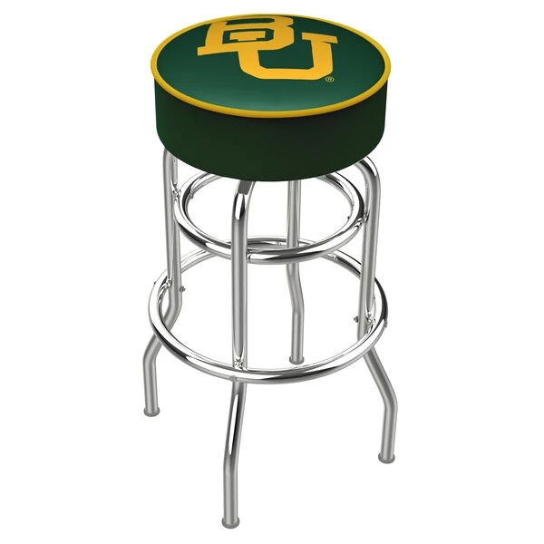 Made for the ultimate sports fan, you will be proud to show where your loyalty lies with this impressive Officially Licensed stool from the Holland Bar Stool Co. This L7C1 double ring swivel stool has a style that brings you back in time. A state of the art print process is used in applying specially formulated UV vinyl ink in numerous stages to produce a sharp, crisp, clear image to ensure a perfect reproduction of the logo. You won't find a higher quality logo stool on the market. The frame is made from commercial grade steel that is strong, durable, and triple chrome-plated to guarantee a long-lasting, rich finish capable of withstanding the abuse of your rowdiest of friends for years to come. The cushion seats are of the highest quality as well, utilizing a breathable, commercial grade vinyl. At the heart of the cushion is highly-dense foam that provides maximum support and will not breakdown in a couple years. If you're going to finish your bar, game room, or man cave do it right- with a logo stool made by the Holland Bar Stool Co.