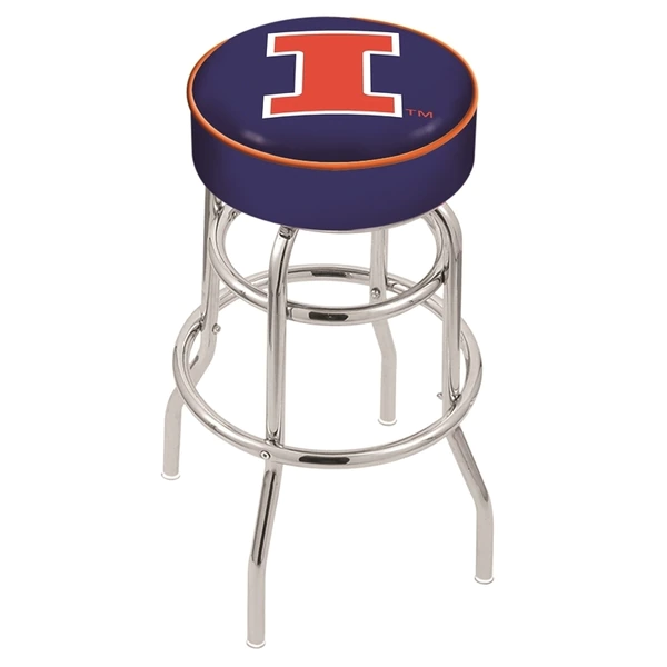 Made for the ultimate sports fan, you will be proud to show where your loyalty lies with this impressive Officially Licensed stool from the Holland Bar Stool Co. This L7C1 double ring swivel stool has a style that brings you back in time. A state of the art print process is used in applying specially formulated UV vinyl ink in numerous stages to produce a sharp, crisp, clear image to ensure a perfect reproduction of the logo. You won't find a higher quality logo stool on the market. The frame is made from commercial grade steel that is strong, durable, and triple chrome-plated to guarantee a long-lasting, rich finish capable of withstanding the abuse of your rowdiest of friends for years to come. The cushion seats are of the highest quality as well, utilizing a breathable, commercial grade vinyl. At the heart of the cushion is highly-dense foam that provides maximum support and will not breakdown in a couple years. If you're going to finish your bar, game room, or man cave do it right- with a logo stool made by the Holland Bar Stool Co.