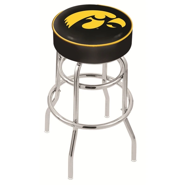 Made for the ultimate sports fan, you will be proud to show where your loyalty lies with this impressive Officially Licensed stool from the Holland Bar Stool Co. This L7C1 double ring swivel stool has a style that brings you back in time. A state of the art print process is used in applying specially formulated UV vinyl ink in numerous stages to produce a sharp, crisp, clear image to ensure a perfect reproduction of the logo. You won't find a higher quality logo stool on the market. The frame is made from commercial grade steel that is strong, durable, and triple chrome-plated to guarantee a long-lasting, rich finish capable of withstanding the abuse of your rowdiest of friends for years to come. The cushion seats are of the highest quality as well, utilizing a breathable, commercial grade vinyl. At the heart of the cushion is highly-dense foam that provides maximum support and will not breakdown in a couple years. If you're going to finish your bar, game room, or man cave do it right- with a logo stool made by the Holland Bar Stool Co.