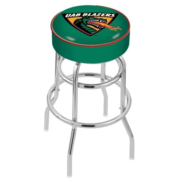 Made for the ultimate sports fan, you will be proud to show where your loyalty lies with this impressive Officially Licensed stool from the Holland Bar Stool Co. This L7C1 double ring swivel stool has a style that brings you back in time. A state of the art print process is used in applying specially formulated UV vinyl ink in numerous stages to produce a sharp, crisp, clear image to ensure a perfect reproduction of the logo. You won't find a higher quality logo stool on the market. The frame is made from commercial grade steel that is strong, durable, and triple chrome-plated to guarantee a long-lasting, rich finish capable of withstanding the abuse of your rowdiest of friends for years to come. The cushion seats are of the highest quality as well, utilizing a breathable, commercial grade vinyl. At the heart of the cushion is highly-dense foam that provides maximum support and will not breakdown in a couple years. If you're going to finish your bar, game room, or man cave do it right- with a logo stool made by the Holland Bar Stool Co.