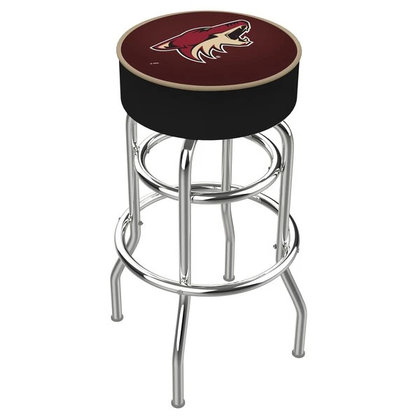 Made for the ultimate sports fan, you will be proud to show where your loyalty lies with this impressive Officially Licensed stool from the Holland Bar Stool Co. This L7C1 double ring swivel stool has a style that brings you back in time. A state of the art print process is used in applying specially formulated UV vinyl ink in numerous stages to produce a sharp, crisp, clear image to ensure a perfect reproduction of the logo. You won't find a higher quality logo stool on the market. The frame is made from commercial grade steel that is strong, durable, and triple chrome-plated to guarantee a long-lasting, rich finish capable of withstanding the abuse of your rowdiest of friends for years to come. The cushion seats are of the highest quality as well, utilizing a breathable, commercial grade vinyl. At the heart of the cushion is highly-dense foam that provides maximum support and will not breakdown in a couple years. If you're going to finish your bar, game room, or man cave do it right- with a logo stool made by the Holland Bar Stool Co.