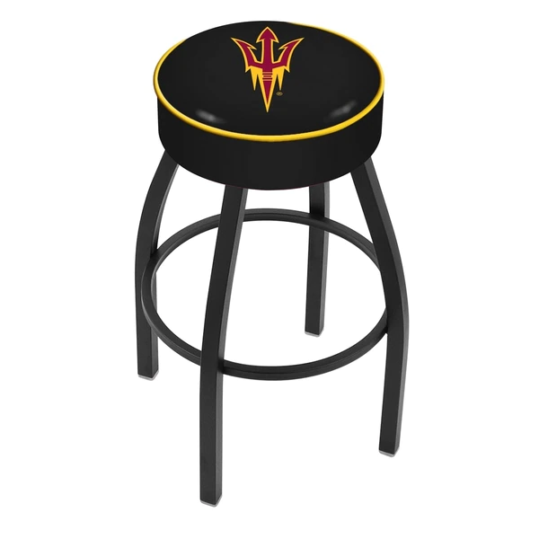 Made for the ultimate sports fan, you will be proud to show where your loyalty lies with this impressive Officially Licensed stool from the Holland Bar Stool Co. This contemporary L8B1 stool features a single-ring black wrinkle base with a 5" scooped cushion that conceals the swivel for an exceptionally clean look. A state of the art print process is used in applying specially formulated UV vinyl ink in numerous stages to produce a sharp, crisp, clear image to ensure a perfect reproduction of the logo. You won't find a higher quality logo stool on the market. The frame is made from commercial quality 16 gauge, 1 1/4 inch tube steel with solid mig welded joints to guarantee strength and durability. The powder coated finish resists chips and scratches and ensures a long-lasting, rich appearance. The cushion seats are of the highest quality as well, utilizing a breathable, commercial grade vinyl. At the heart of the cushion is highly-dense foam that provides maximum support and will not breakdown in a couple years. If you're going to finish your bar, game room, or man cave do it right- with a logo stool made by the Holland Bar Stool Co.