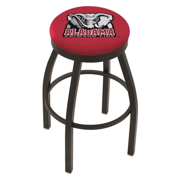 Made for the ultimate sports fan, you will be proud to show where your loyalty lies with this impressive Officially Licensed stool from the Holland Bar Stool Co. This contemporary L8B2B stool has a single-ring black wrinkle base with a 2 1/2" thick cushion sitting on top of a 2" black wrinkle ring that conceals the swivel for an exceptionally clean look. A state of the art print process is used in applying specially formulated UV vinyl ink in numerous stages to produce a sharp, crisp, clear image to ensure a perfect reproduction of the logo. You won't find a higher quality logo stool on the market. The frame is made from commercial quality 16 gauge, 1 1/4 inch tube steel with solid mig welded joints to guarantee strength and durability. The powder coated finish resists chips and scratches and ensures a long-lasting, rich appearance. The cushion seats are of the highest quality as well, utilizing a breathable, commercial grade vinyl. At the heart of the cushion is highly-dense foam that provides maximum support and will not breakdown in a couple years. If you're going to finish your bar, game room, or man cave do it right- with a logo stool made by the Holland Bar Stool Co.