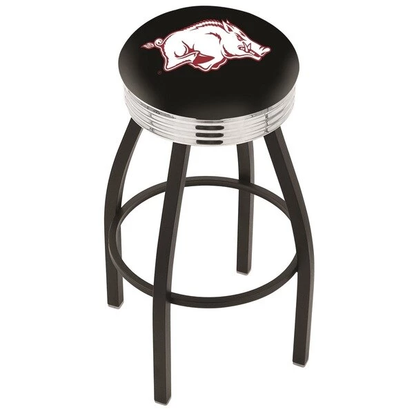 Made for the ultimate sports fan, you will be proud to show where your loyalty lies with this impressive Officially Licensed stool from the Holland Bar Stool Co. This classic L8B3C swivel stool features a single-ring black wrinkle base with a 2 1/2" thick cushion sitting on top of a 2.75" chrome ribbed ring that conceals the swivel for an exceptionally clean look. A state of the art print process is used in applying specially formulated UV vinyl ink in numerous stages to produce a sharp, crisp, clear image to ensure a perfect reproduction of the logo. You won't find a higher quality logo stool on the market. The frame is made from commercial quality 16 gauge, 1 1/4 inch tube steel with solid mig welded joints to guarantee strength and durability. The powder coated finish resists chips and scratches and ensures a long-lasting, rich appearance. The cushion seats are of the highest quality as well, utilizing a breathable, commercial grade vinyl. At the heart of the cushion is highly-dense foam that provides maximum support and will not breakdown in a couple years. If you're going to finish your bar, game room, or man cave do it right- with a logo stool made by the Holland Bar Stool Co.
