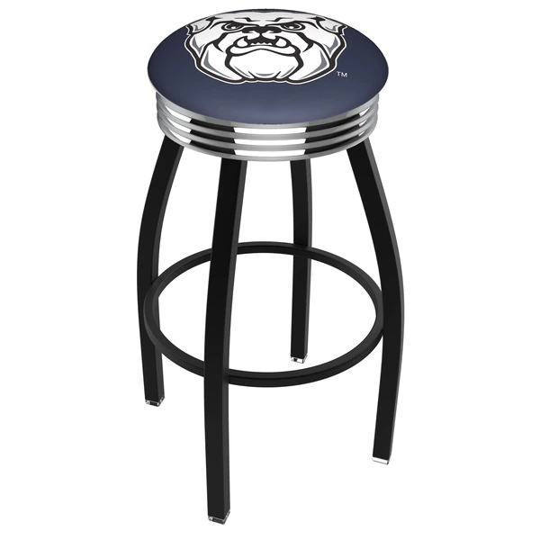 Made for the ultimate sports fan, you will be proud to show where your loyalty lies with this impressive Officially Licensed stool from the Holland Bar Stool Co. This classic L8B3C stool features a single-ring black wrinkle base with a 2 1/2" thick cushion sitting on top of a 2.75" chrome ribbed ring that conceals the swivel for an exceptionally clean look. A state of the art print process is used in applying specially formulated UV vinyl ink in numerous stages to produce a sharp, crisp, clear image to ensure a perfect reproduction of the logo. You won't find a higher quality logo stool on the market. The frame is made from commercial quality 16 gauge, 1 1/4 inch tube steel with solid mig welded joints to guarantee strength and durability. The powder coated finish resists chips and scratches and ensures a long-lasting, rich appearance. The cushion seats are of the highest quality as well, utilizing a breathable, commercial grade vinyl. At the heart of the cushion is highly-dense foam that provides maximum support and will not breakdown in a couple years. If you're going to finish your bar, game room, or man cave do it right- with a logo stool made by the Holland Bar Stool Co.