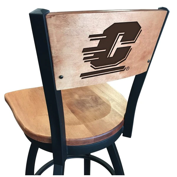 Made for the ultimate sports fan, you will be proud to show where your loyalty lies with this impressive Officially Licensed stool from the Holland Bar Stool Co. Add a touch of class with this L038 Laser Engraved, swivel logo stool that has a medium finished wood back that doesn't just add comfort, but sophistication. The back is first laser engraved with your teams logo on state of the art equipment and then finished and sealed to ensure the best quality product possible. You won't find a higher quality logo stool on the market. The frame is made from commercial quality 16 gauge, 1 1/4 inch tube steel with solid mig welded joints to guarantee strength and durability. The powder coated finish resists chips and scratches and ensures a long-lasting, rich appearance. The wood seat is 1 3/4 inch solid maple and is dished for amazing posterior comfort, making sitting for minutes or hours a pleasure. If you're going to finish your bar, game room, or man cave do it right- with a logo stool made by the Holland Bar Stool Co.