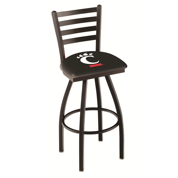 Made for the ultimate sports fan, you will be proud to show where your loyalty lies with this impressive Officially Licensed stool from the Holland Bar Stool Co. This L014 swivel logo stool has a defined Ladder Back style that doesn't just add comfort, but sophistication. A state of the art print process is used in applying specially formulated UV vinyl ink in numerous stages to produce a sharp, crisp, clear image to ensure a perfect reproduction of the logo. You won't find a higher quality logo stool on the market. The frame is made from commercial quality 16 gauge, 1 1/4 inch tube steel with solid mig welded joints to guarantee strength and durability. The powder coated finish resists chips and scratches and ensures a long-lasting, rich appearance. The cushion seats are of the highest quality as well, utilizing a breathable, commercial grade vinyl. At the heart of the cushion is 2 1/2 inches of highly-dense foam that provides maximum support and will not breakdown in a couple years. If you're going to finish your bar, game room, or man cave do it right- with a logo stool made by the Holland Bar Stool Co.