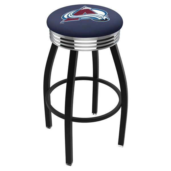 Made for the ultimate sports fan, you will be proud to show where your loyalty lies with this impressive Officially Licensed stool from the Holland Bar Stool Co. This classic L8B3C stool features a single-ring black wrinkle base with a 2 1/2" thick cushion sitting on top of a 2.75" chrome ribbed ring that conceals the swivel for an exceptionally clean look. A state of the art print process is used in applying specially formulated UV vinyl ink in numerous stages to produce a sharp, crisp, clear image to ensure a perfect reproduction of the logo. You won't find a higher quality logo stool on the market. The frame is made from commercial quality 16 gauge, 1 1/4 inch tube steel with solid mig welded joints to guarantee strength and durability. The powder coated finish resists chips and scratches and ensures a long-lasting, rich appearance. The cushion seats are of the highest quality as well, utilizing a breathable, commercial grade vinyl. At the heart of the cushion is highly-dense foam that provides maximum support and will not breakdown in a couple years. If you're going to finish your bar, game room, or man cave do it right- with a logo stool made by the Holland Bar Stool Co.