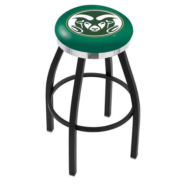 Made for the ultimate sports fan, you will be proud to show where your loyalty lies with this impressive Officially Licensed stool from the Holland Bar Stool Co. This contemporary L8B2C stool has a single-ring black wrinkle base with a 2 1/2" thick cushion sitting on top of a 2" chrome ring that conceals the swivel for an exceptionally clean look. A state of the art print process is used in applying specially formulated UV vinyl ink in numerous stages to produce a sharp, crisp, clear image to ensure a perfect reproduction of the logo. You won't find a higher quality logo stool on the market. The frame is made from commercial quality 16 gauge, 1 1/4 inch tube steel with solid mig welded joints to guarantee strength and durability. The powder coated finish resists chips and scratches and ensures a long-lasting, rich appearance. The cushion seats are of the highest quality as well, utilizing a breathable, commercial grade vinyl. At the heart of the cushion is highly-dense foam that provides maximum support and will not breakdown in a couple years. If you're going to finish your bar, game room, or man cave do it right- with a logo stool made by the Holland Bar Stool Co.